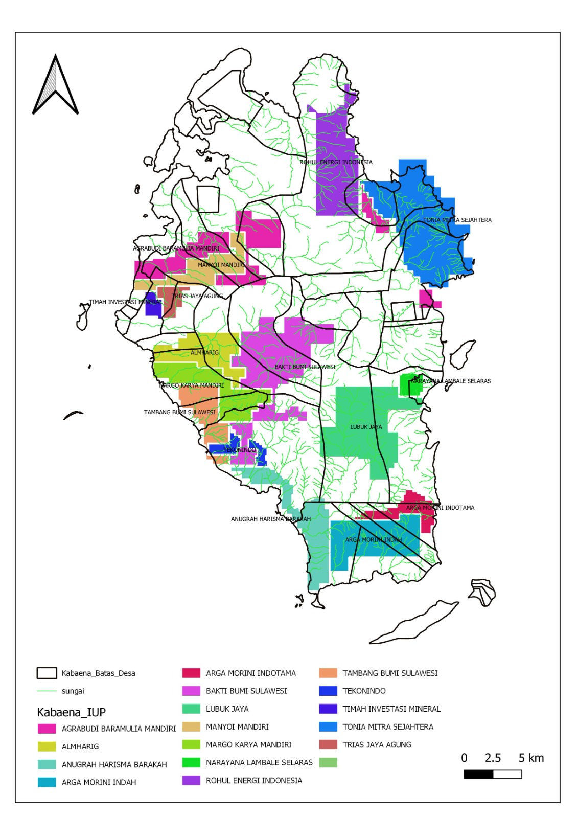 Kapling konsesi 16 izin usaha pertambangan di Pulau Kabaena. Dokumen Sagori